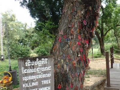 Après 45min de trajet entre ville et campagne en tuk-tuk, nous arrivons au Killing Field où furent exécutées près de 17 000 personnes sous le régime des Khmers rouges entre 1975 et 1979.